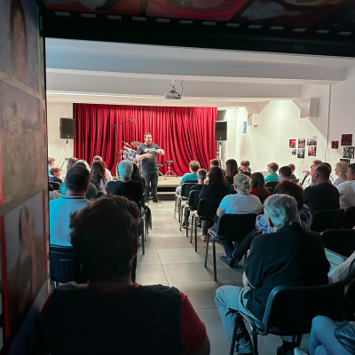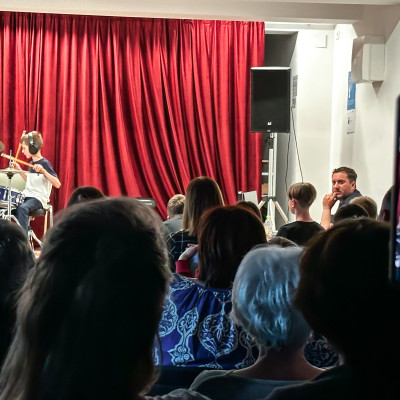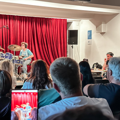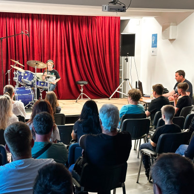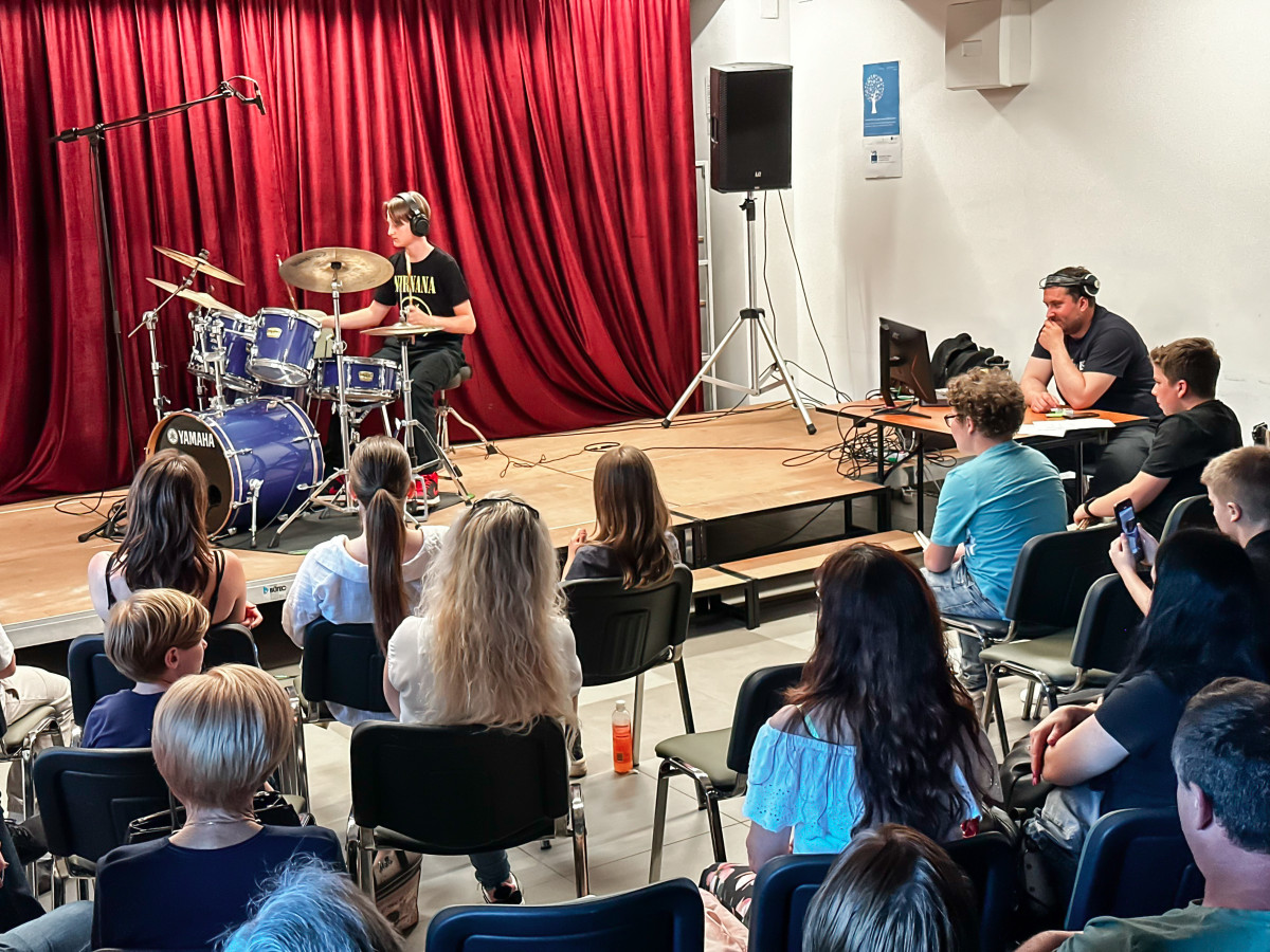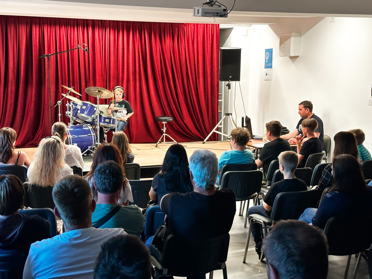 Učenci J. Z. Šole bobnov so se predstavili v Mladinsko kulturnem centru Ljutomer. Vsak od njih je po lastni izbiri izbral slovensko skladbo, ki je bila izdana do leta 2000. Publika je napolnila prireditveni prostor in z aplavzi nagradila mlade nastopajoče. Vse skupaj je povezoval kar sam učitelj bobnov, Jože Zadravec. Bilo je veselo, poučno in zabavno. 🫶🤩🥁