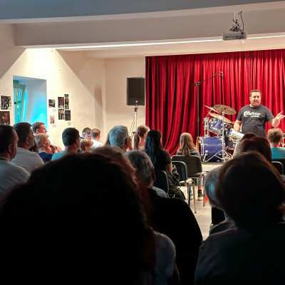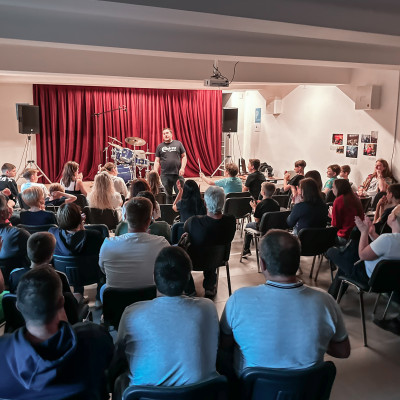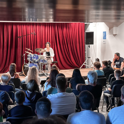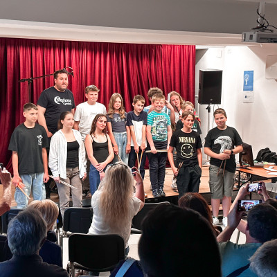 Učenci J. Z. Šole bobnov so se predstavili v Mladinsko kulturnem centru Ljutomer. Vsak od njih je po lastni izbiri izbral slovensko skladbo, ki je bila izdana do leta 2000. Publika je napolnila prireditveni prostor in z aplavzi nagradila mlade nastopajoče. Vse skupaj je povezoval kar sam učitelj bobnov, Jože Zadravec. Bilo je veselo, poučno in zabavno. 🫶🤩🥁