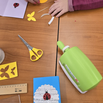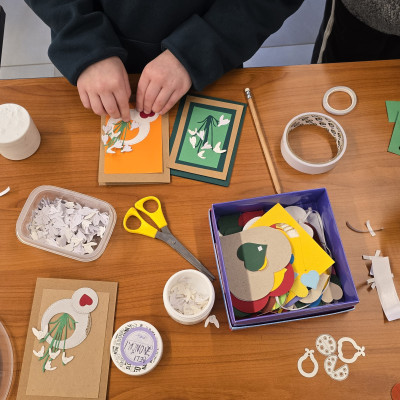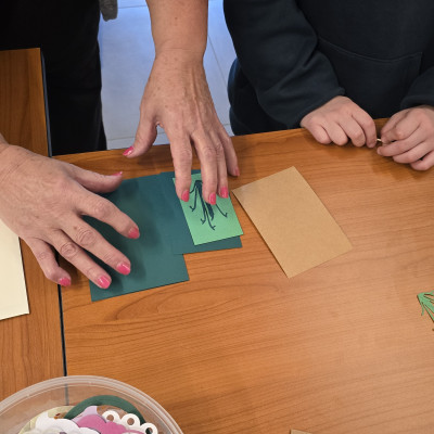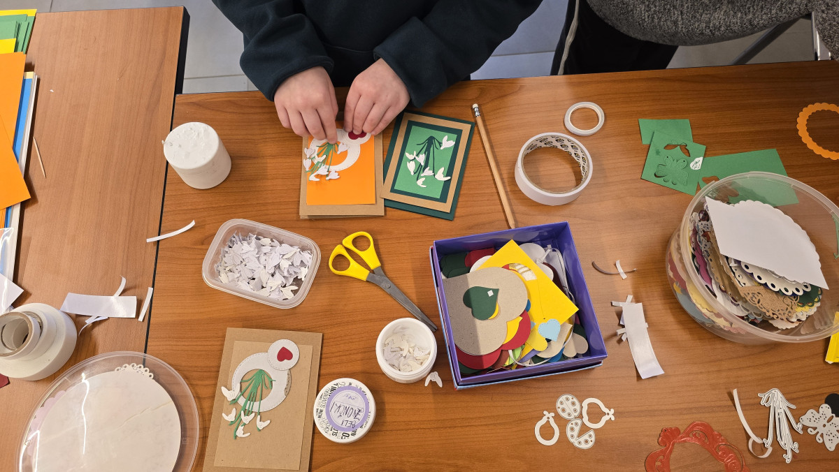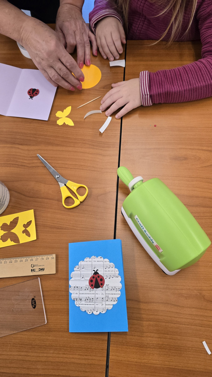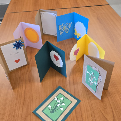 Ustvarjali smo voščilnice s pomladnimi motivi z mentorico Frančiško Fani Zorec.